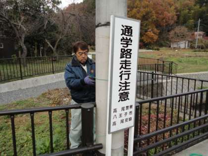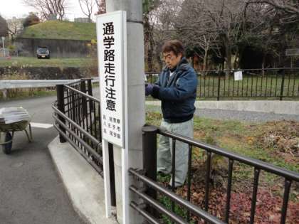 12月10日、城山小坂下からホーメストタウンに通じる通学路の交通安全看板を新しく付け替えました。