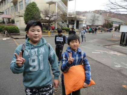 12月22日の下校風景です。最初に現れたのは、6年生でした。
