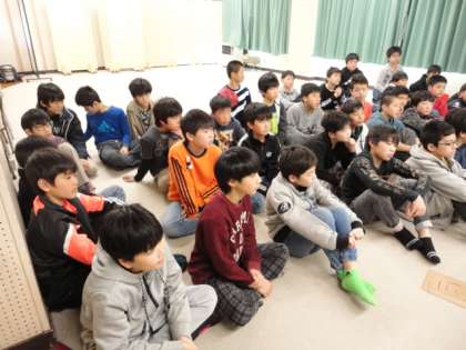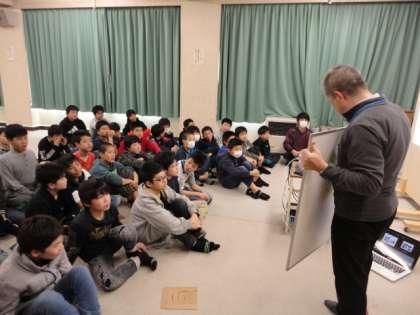 男子がお話を聞いています。2月22日には、5年生でも実施します。