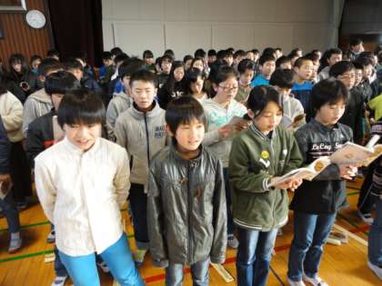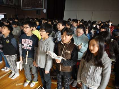 6年生は、ちょっと恥ずかしそうでしたが、きれいな歌声を聞かせてくれています。