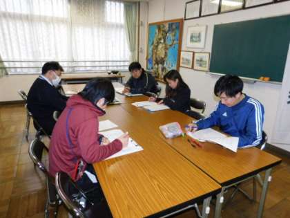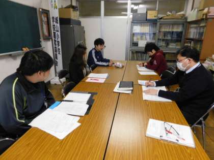 放課後に、2・3年次の先生、教職大学院生、管理職で、授業の振り返りをしました。