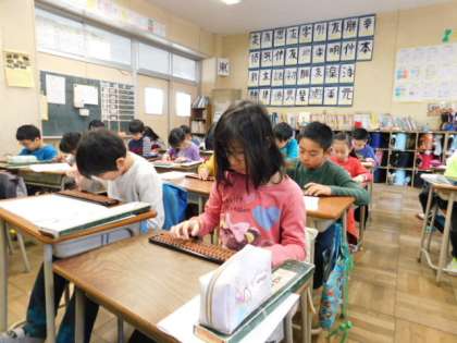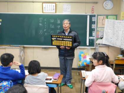 3年生が、初めての算盤の授業をしました。3年生にも、ゲストティーチャーとして、算盤塾の先生が来て、教えてくださいました。