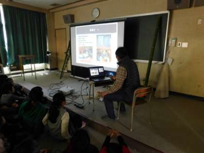 来週から、5年生が「紙すき体験」をさせていただく、結の会の方が、ゲストティーチャーとして、5年生に話をしに来てくださいました。