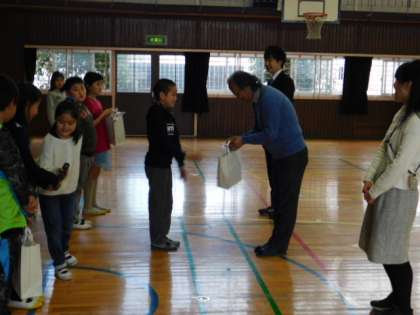 最後にサプライズで、子供たちから担任の先生方にプレゼントが渡されました。