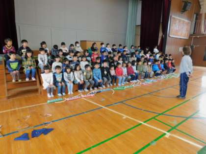 体育館では1年生が、入学式の練習をしていました。頑張ってね。