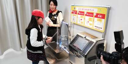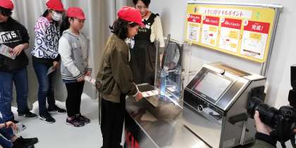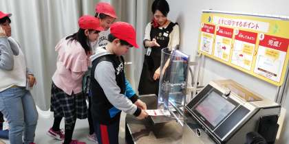 製造ラインの見学が終わったら、体験コーナーに行きました。印字機を体験しました。