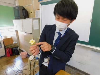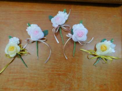 6年生が卒業式でつける胸花(コサージュ)作りをしていました。担任の先生も作っていました。
