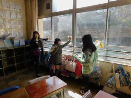 3学期は、ゴミ拾い後、校舎内の窓ふきもしてくださいました。今回はお父さん方もたくさん来てくださいました。