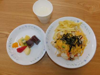 3月9日(土)、今年度最後の「しろくまごはん」がありました。今月は、卒業お祝いメニューで、ちらしずしと果物、スィーツと飲むヨーグルトでした。