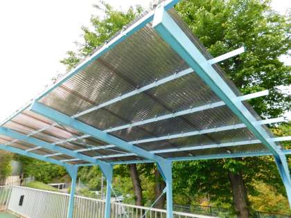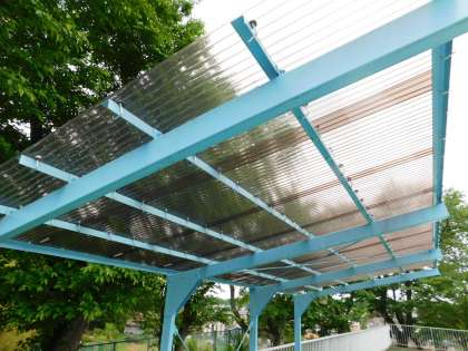 プール見学の際の日除けを新しく張り直しました。用務主事さんが4月にやってくれました。