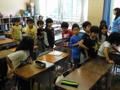 2年生が、1年生を案内する学校探検。そのための準備に2年生が学校内をめぐっていました。