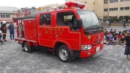 消防車を間近で見ることは、あまりないので、子供たちは興味津々でした。