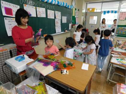 写真は1年2組の様子です。2組は図工の授業でした。