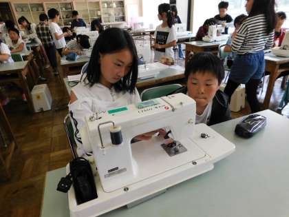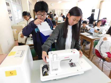 6年3組は、家庭科でした。調理実習の振り返りをした後、ミシンの学習をしていました。
