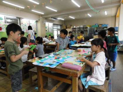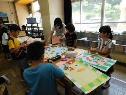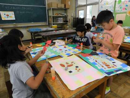 色紙を切って、オリジナルのお弁当を作ります。どの子も楽しそうに、紙を切る姿が見られました。