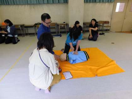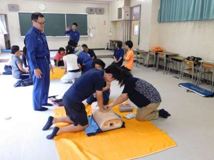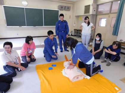 水泳指導を前に、先生方が救命救急講習を受けました。