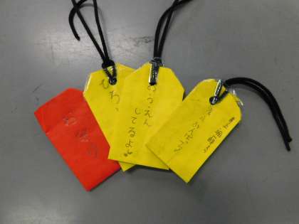 明日から、5年生が清水移動教室に行きます。6年生が、5年生一人一人にメッセージの入ったお守りを作ってくれました。