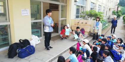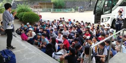 今日から一泊二日の清水移動教室です。天気も晴れました。安全に気を付けて行ってきます。出発式の様子です。