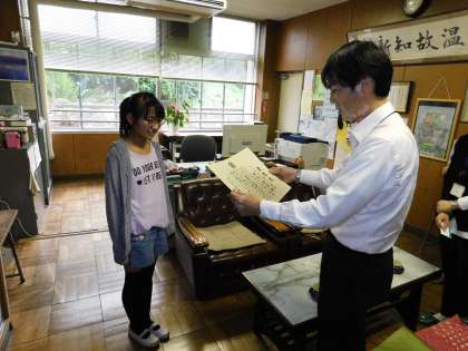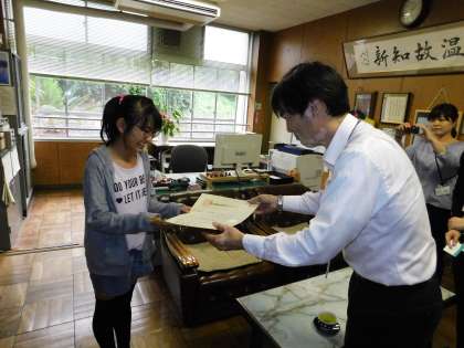 本校の5年生が、ピアノコンクールの優秀な成績により、八王子市教育委員会表彰を受けました。担当の方が来てくださり、直接渡してくれました。