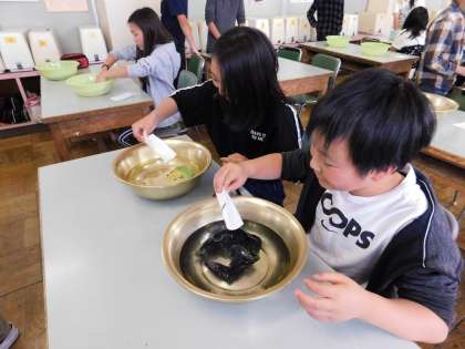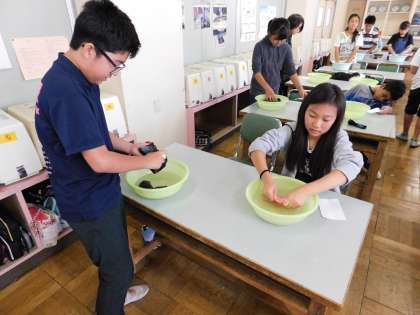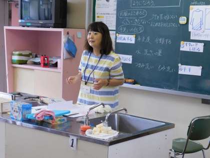 6年3組で家庭科の授業がありました。今日は洗濯の授業です。