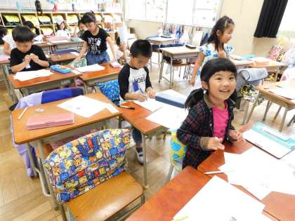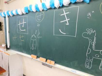 1年2組では、漢字の練習をしていました。