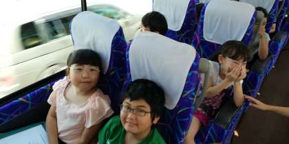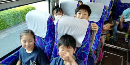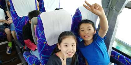 バス車内です。お休み無し。全員で行ってきます。出発前、盛大なお見送りをしていただきました。ありがとうございました。