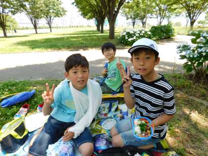 さあ、お弁当タイムです。早く出たので、みんなお腹ペコペコです。