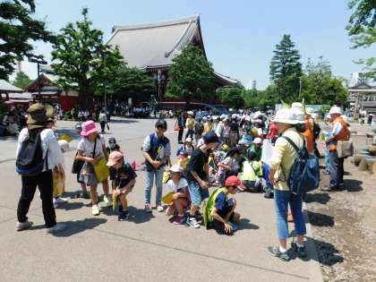 午後の見学先は、浅草です。ガイドボランティアの方と共に、グループに分かれて、浅草寺周辺を見学しました。