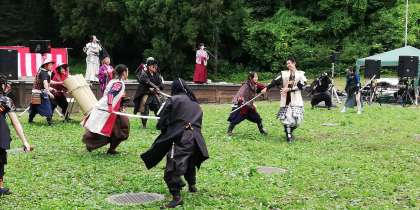 祝砲の後は、北条軍と豊臣方の真田軍との戦いをもとにした、剣劇が行われました。