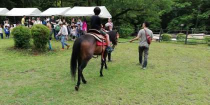 屋外模型広場では、乗馬体験もありました。五年生が来ていました。
