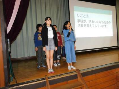 始めに委員会の子どもたちが、仕事の内容について話をしました。