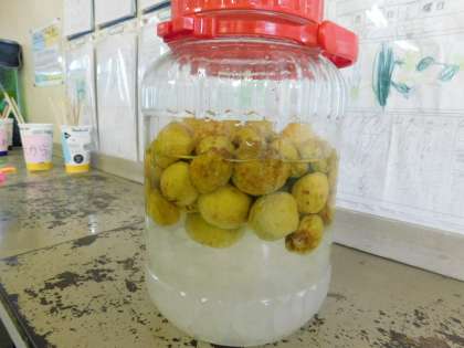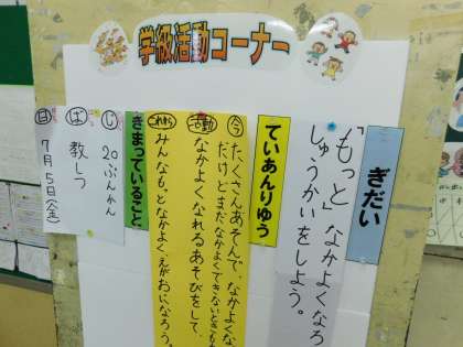 教室の掲示には学級活動コーナーが貼ってありました。梅ジュースの元もありました。