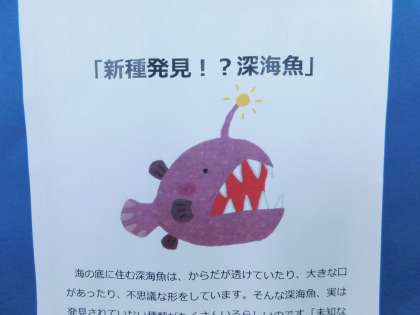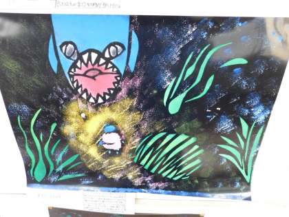 5年生の図工作品です。題名は「新種発見!?深海魚」です。