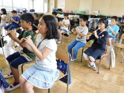 合唱に続いて、リコーダーで「地平線」を吹きました。
