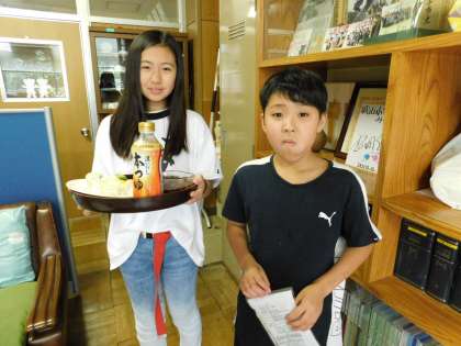 6年1組の子が、調理実習で作ったソーメンを届けてくれました。ありがとうね。班ごとに工夫を凝らしたソーメンが出来上がったようです。