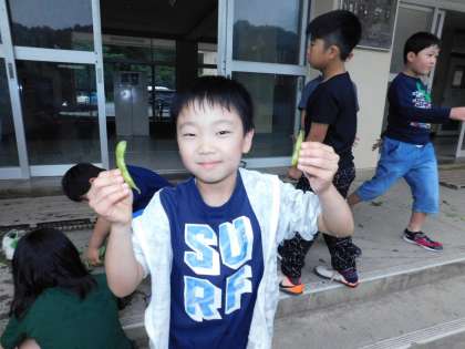 今年は長梅雨もあり、少し収穫が少なかったようですが、子供たちは楽しそうにえだまめをもいでいました。