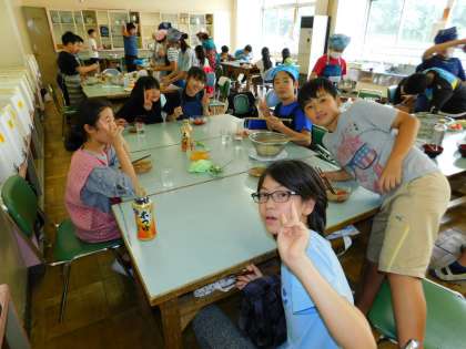 6年生が1学期最後の調理実習を行いました。写真は3組の様子です。担任の先生も呼ばれて、一緒に楽しそうに食べました。