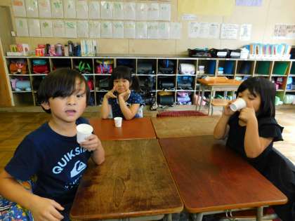 ジュースをサイダーで割って飲みました。おかわりをした子も大勢いました。