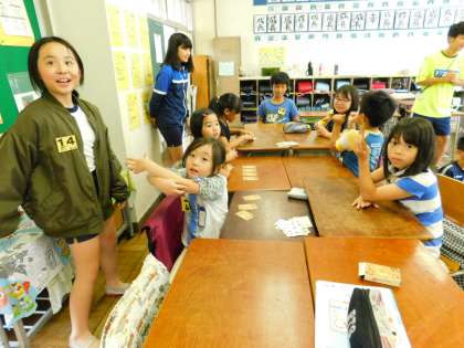 始めは外で行う予定でしたが、小雨が降ってきてしまい、教室での実施となりました。