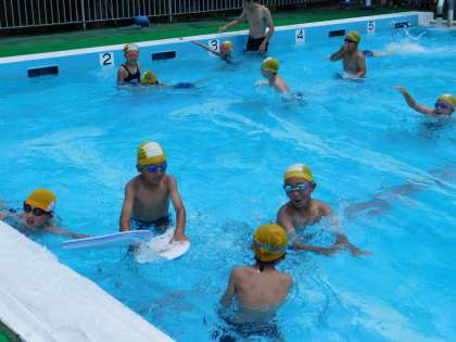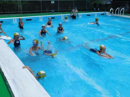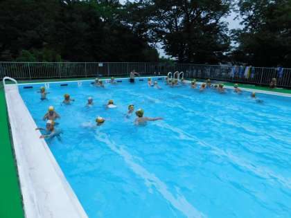 17日は雨も降らず、気温も上昇。待ってましたとばかりにプールに入りました。写真は3年生です。