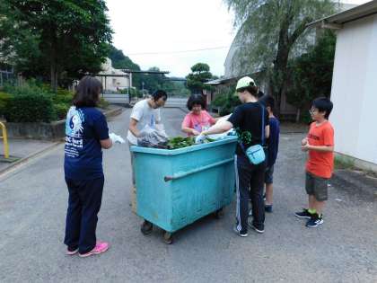最後にコンテナボックスに草を入れています。6年生が手伝いに来てくれました。ありがとうね。