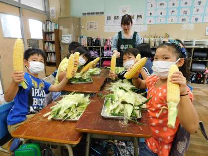 トウモロコシの皮むき体験7