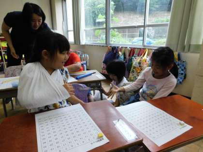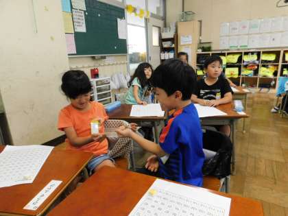 1年1組では「じゃんけんスゴロク」をしていました。とても楽しそうに取り組んでいました。