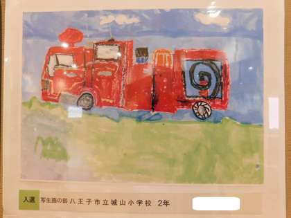2年生が取り組んだ「消防写生会」の入選作品の絵画展がイイアス高尾で開かれていました。
