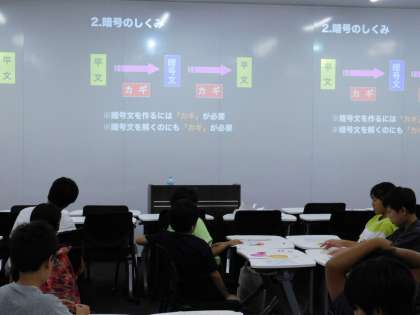 最後の講座は、「暗号の解読」です。初歩の暗号の仕組みを知り、解読したり、暗号化したりしました。