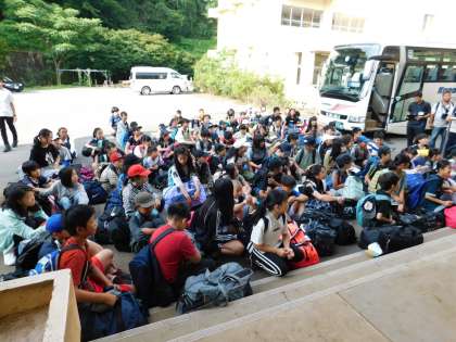 出発式の様子です。台風の影響で心配された雨も降っていません。
