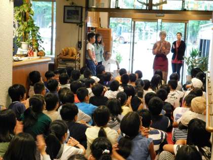 湯ノ湖荘に到着しました。開校式では女将さんの話を聞きました。避難訓練も行いました。