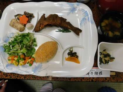 宿に戻り、入浴を済ませれば夕食です。女将さんからメニューの話を聞き、いただきますです。マスは二度揚げされ、頭から食べられます。