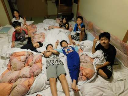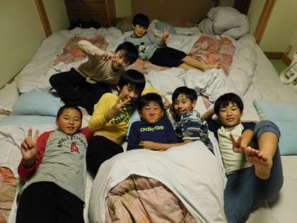さあ、おやすみタイムです。一日目は男子の部屋で写真を撮りました。