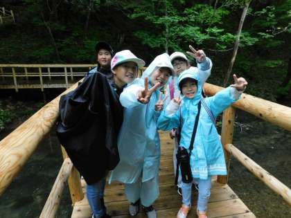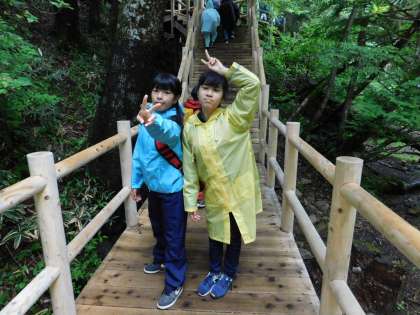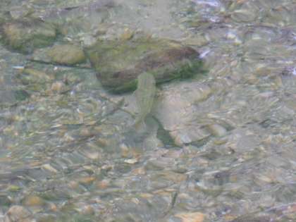 木道の横には湯滝から中禅寺湖につながる湯川が流れています。マスも元気に泳いでいました。